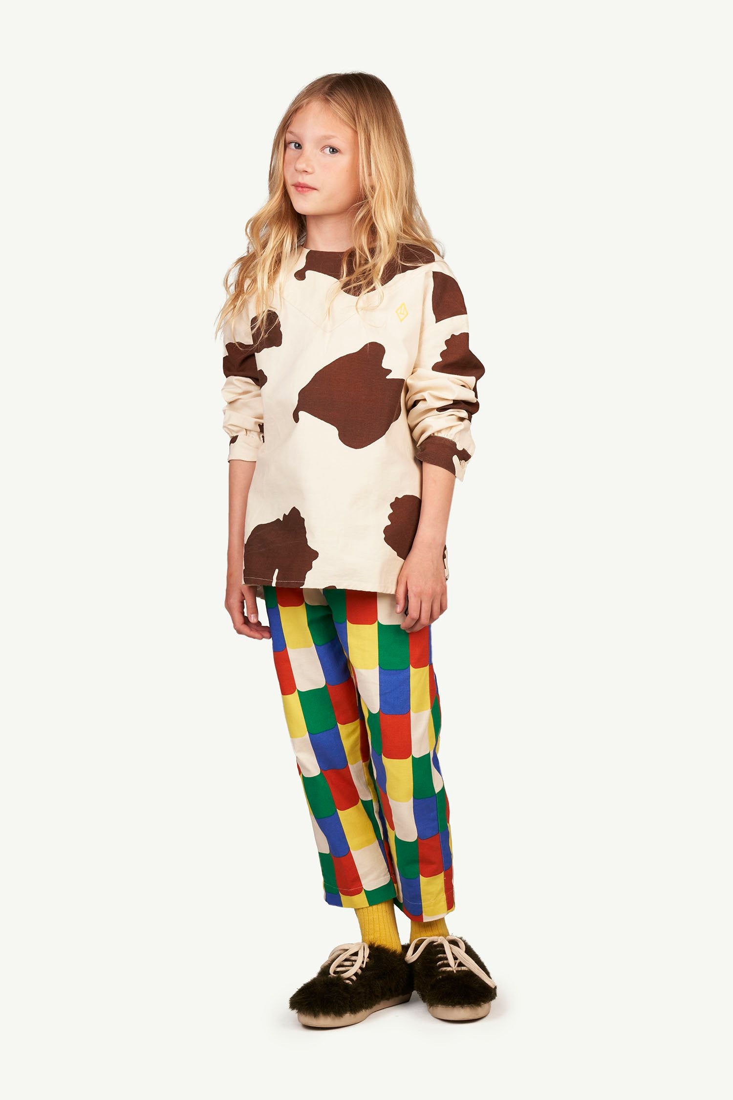 This long-sleeved, cotton and linen mix White Cow Marmot Shirt features a bold cow print and is ideal for throwing on and hitting the park!