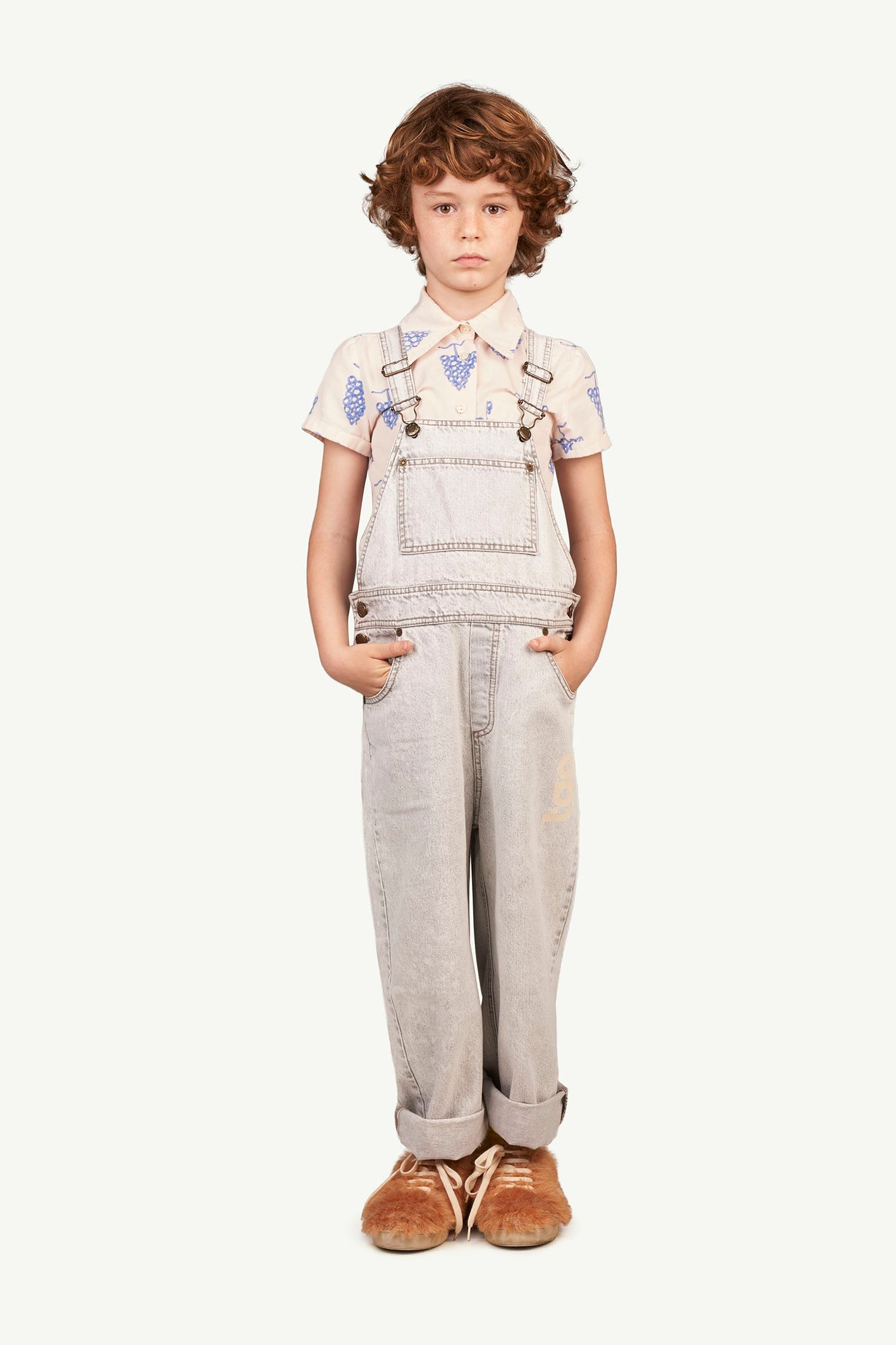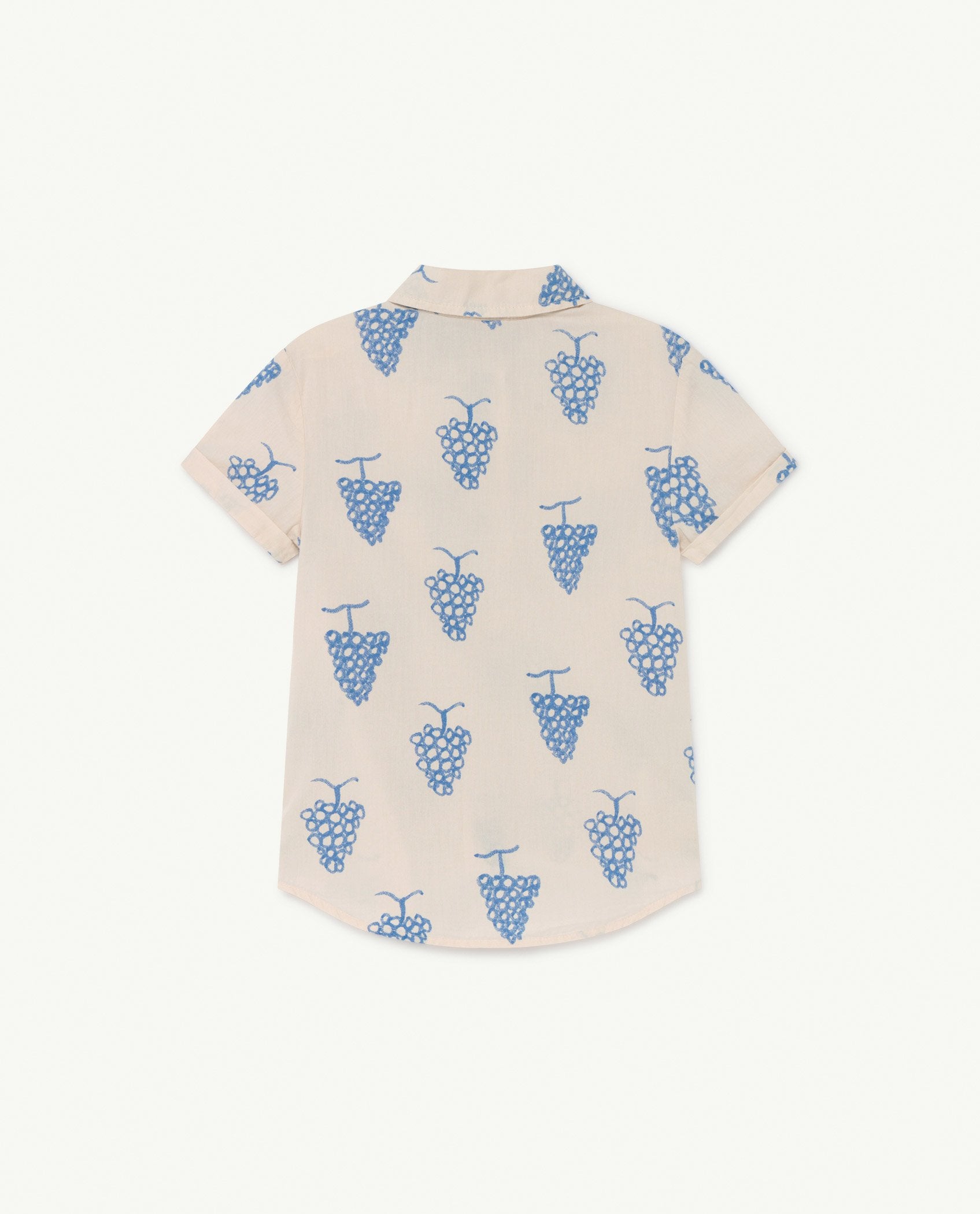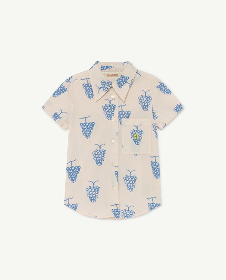 This short-sleeved White Grapes Kangaroo Shirt with its sharp collar is perfect for throwing on with jeans, featuring a funky white and blue grape pattern and a small pocket with The Animals Observatory logo.