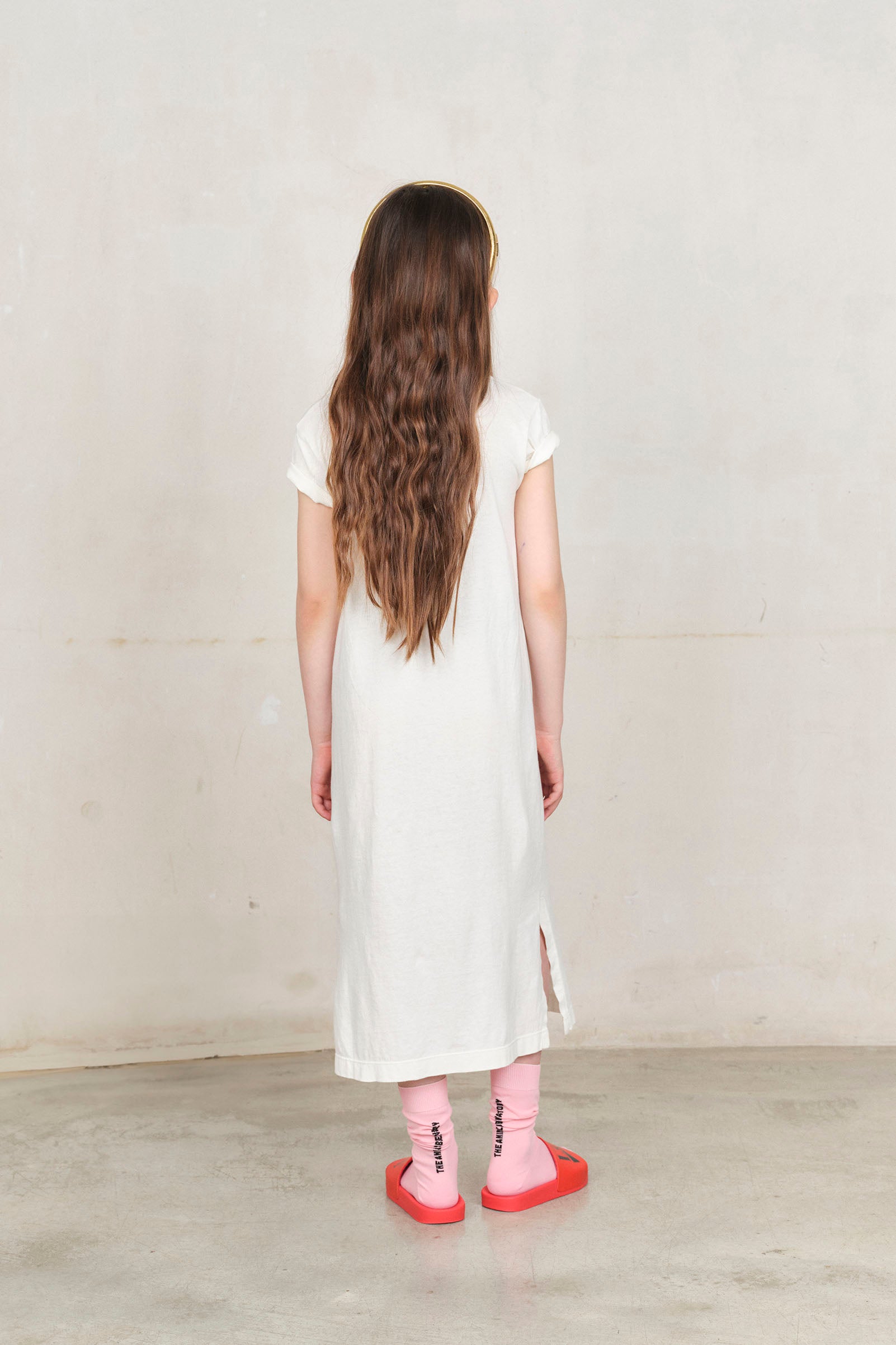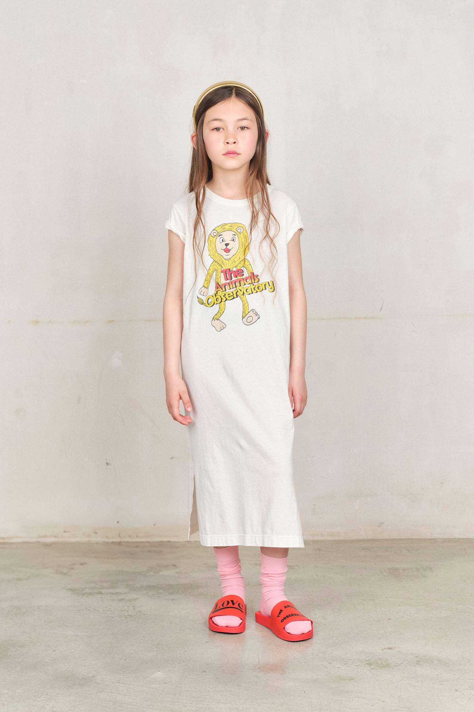 Dress with brand name and funny lion. Bright, playful, ideal for summer adventures.