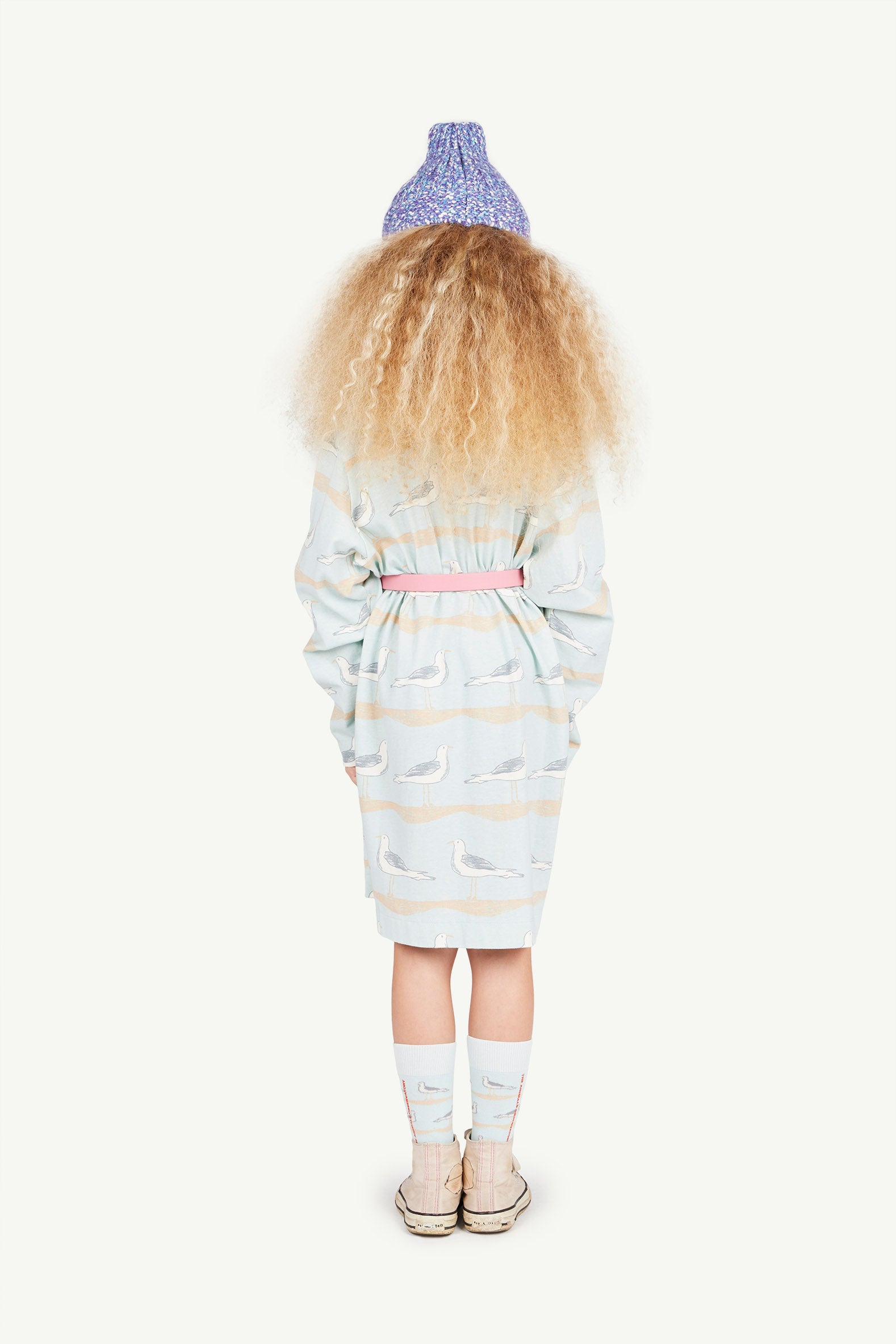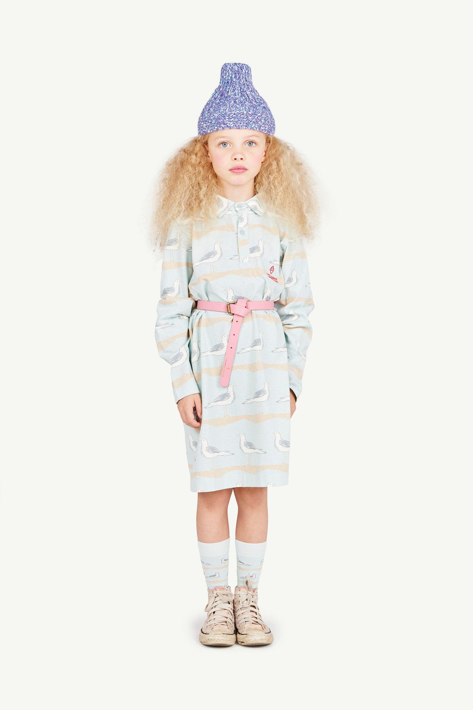 Kids dress that features some nostalgic seagulls all over, with a buttoned neck.