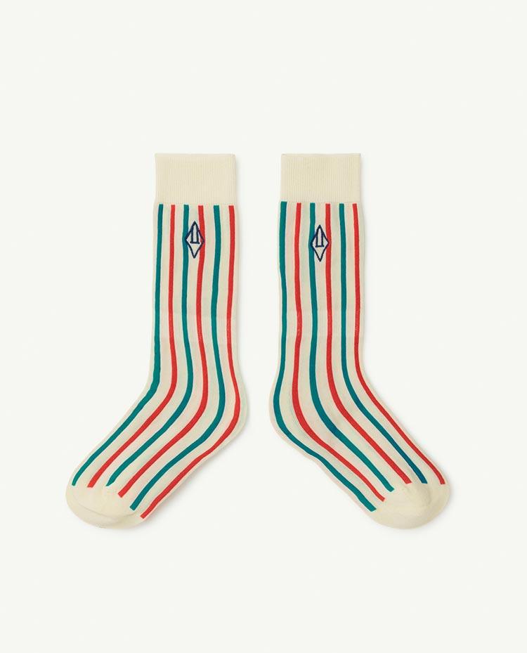 These cosy White Stripes Logo Hen Socks have an eye-catching rainbow striped pattern and feature The Animals Observatory logo.