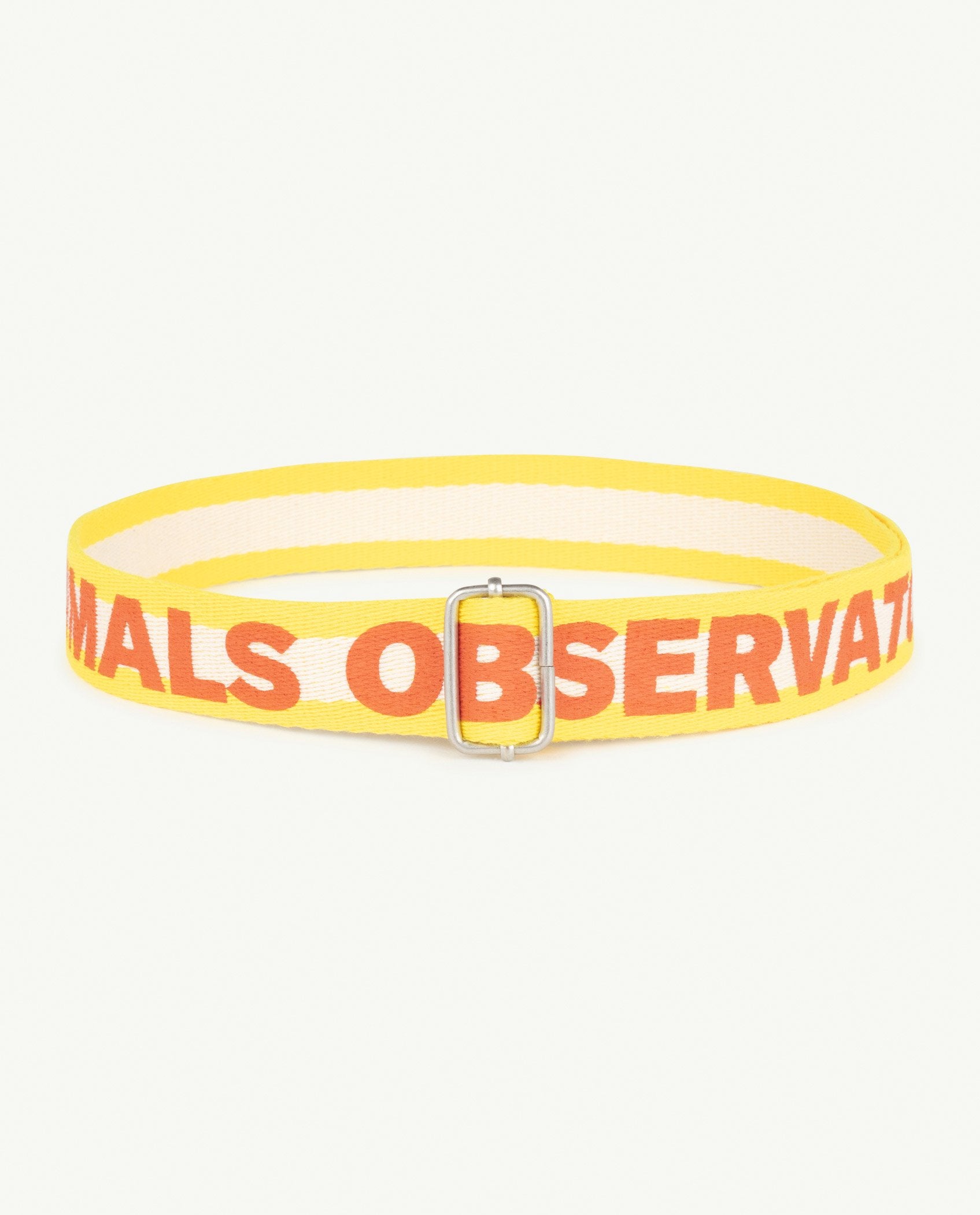 This striped belt makes an awesome accessory for any outfit, in a white striped design and inscribed with The Animals Observatory.