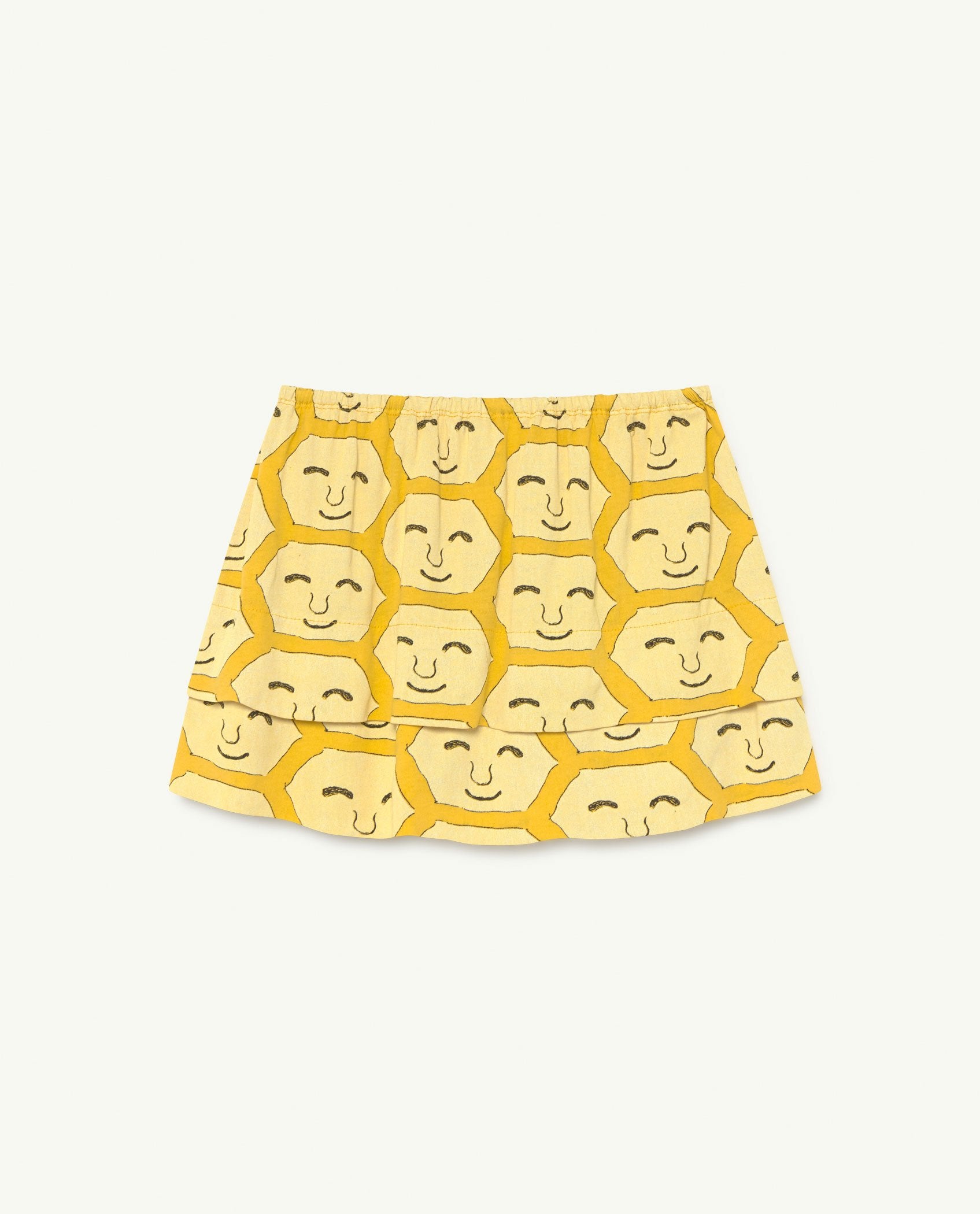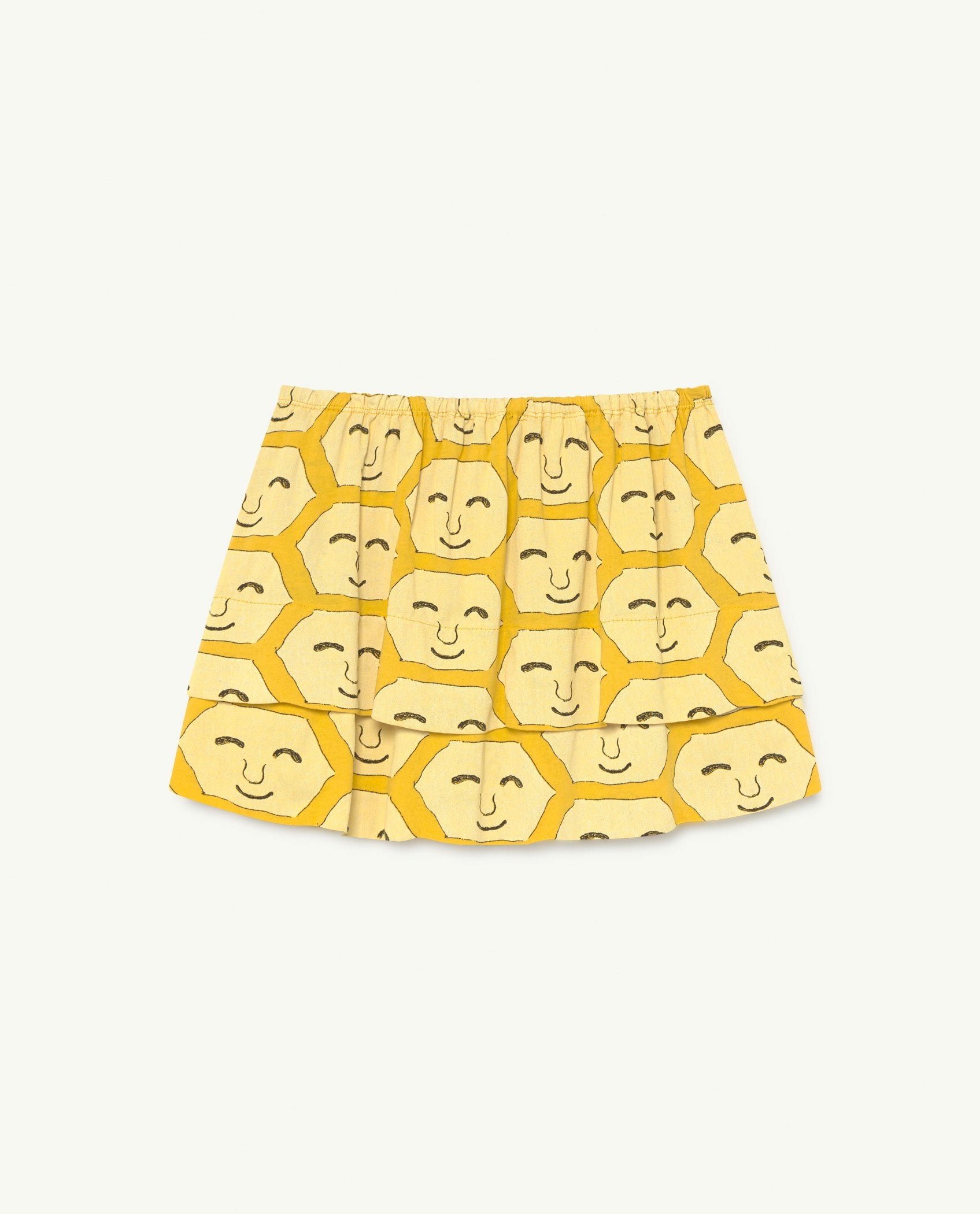 An adorable double-layered mini skirt with an elasticated waistband that they'll love wearing. In sunny yellow with a happy face print to make you smile.