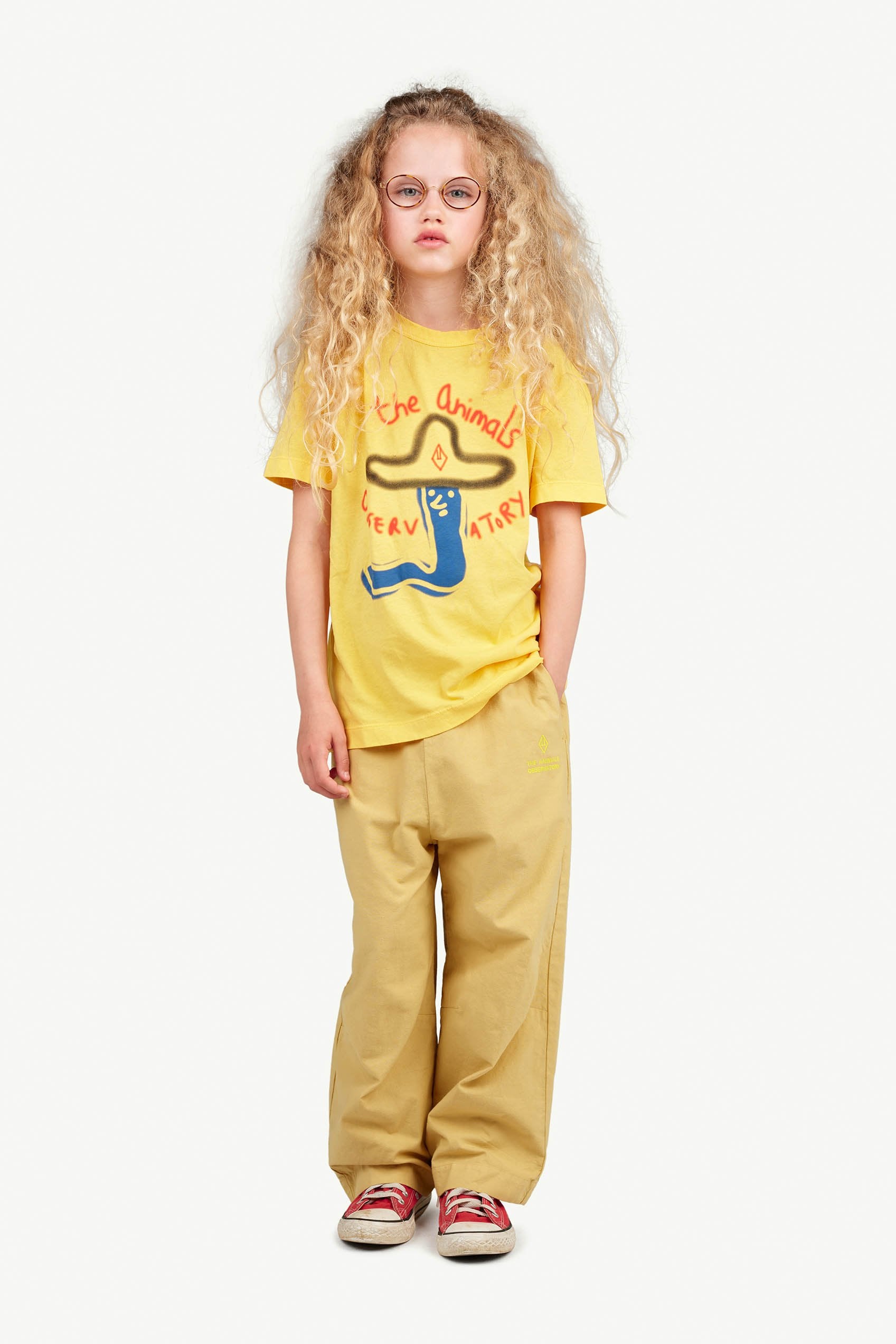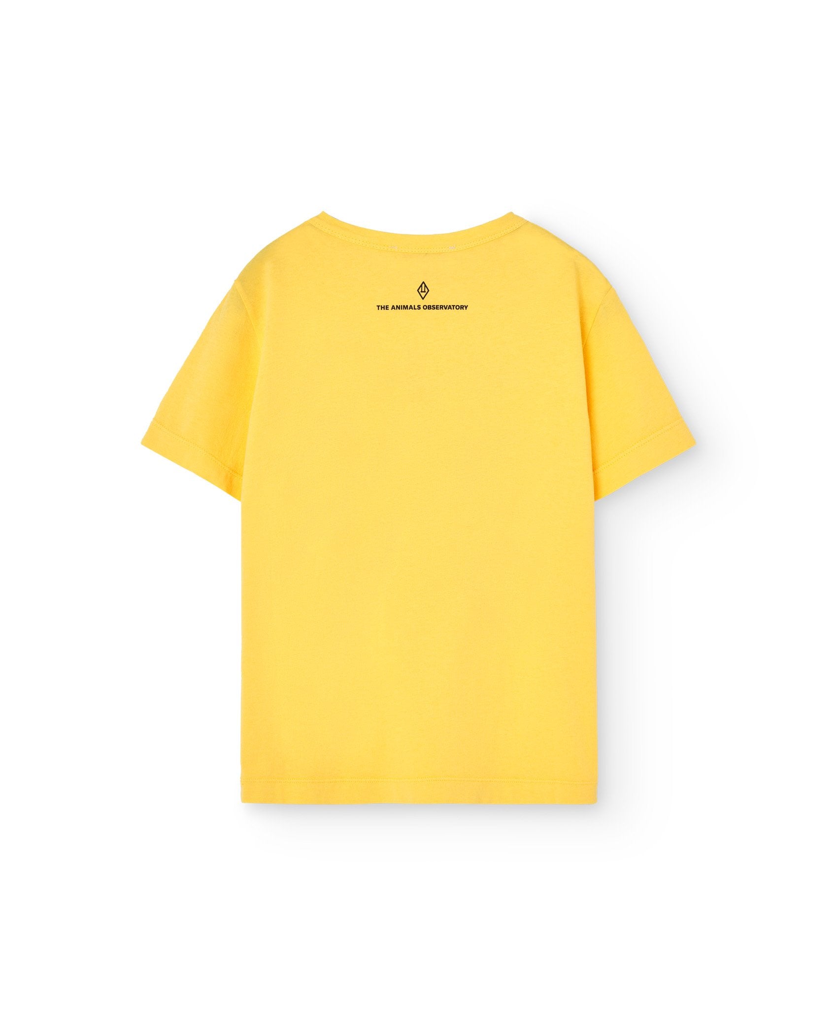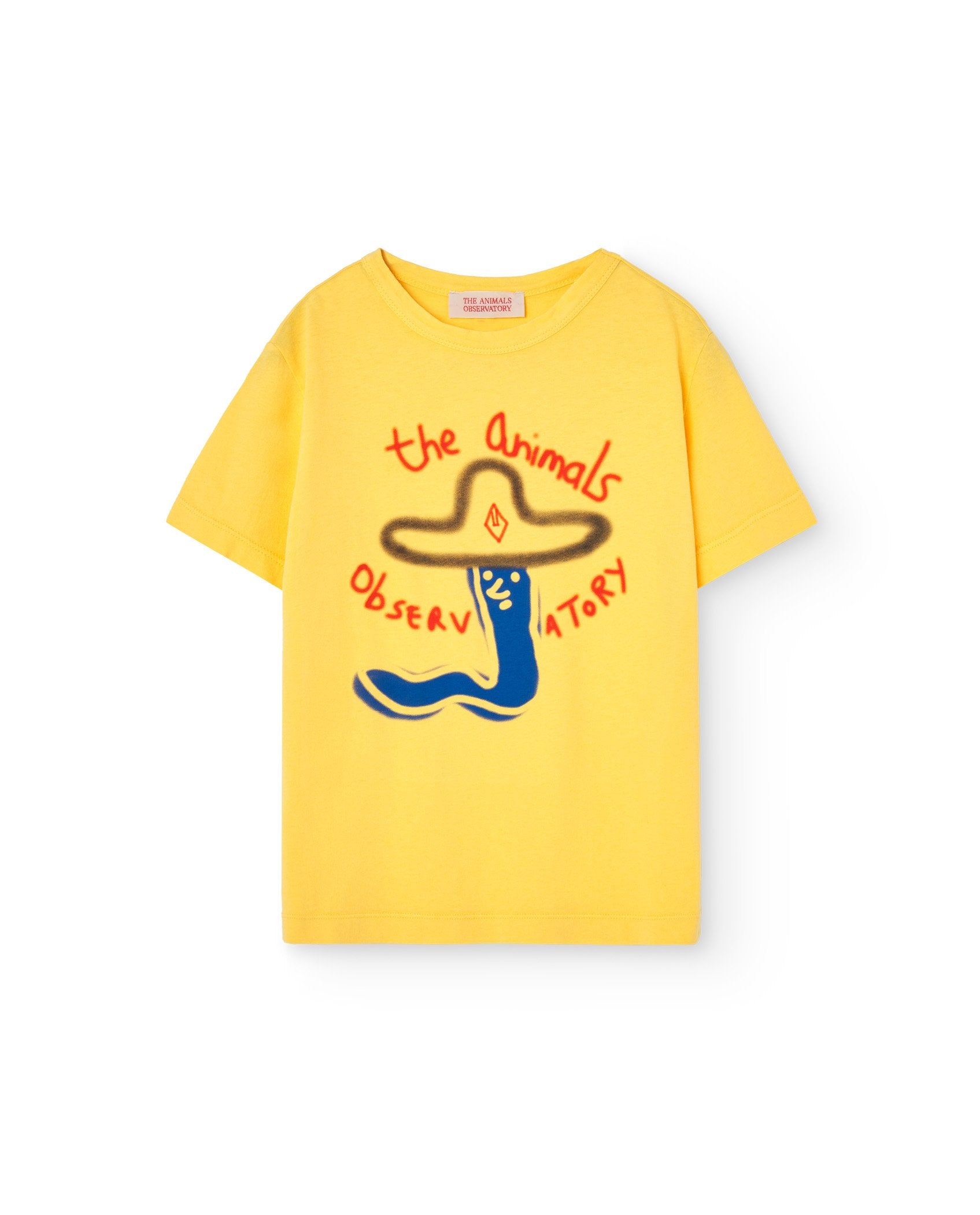 The Yellow Hat Rooster T-Shirt in a regular fit features a sketch of a hypnotic wormy creature with a cool blurry effect and The Animals Observatory lettering portrayed as a graffiti tag. This t-shirt is 100% made of cotton and highlights a striking electric blue on a yellow canvas The yarn with which this t-shirt is made is GOTS certified to guarantee its organic origin and social responsibility.
