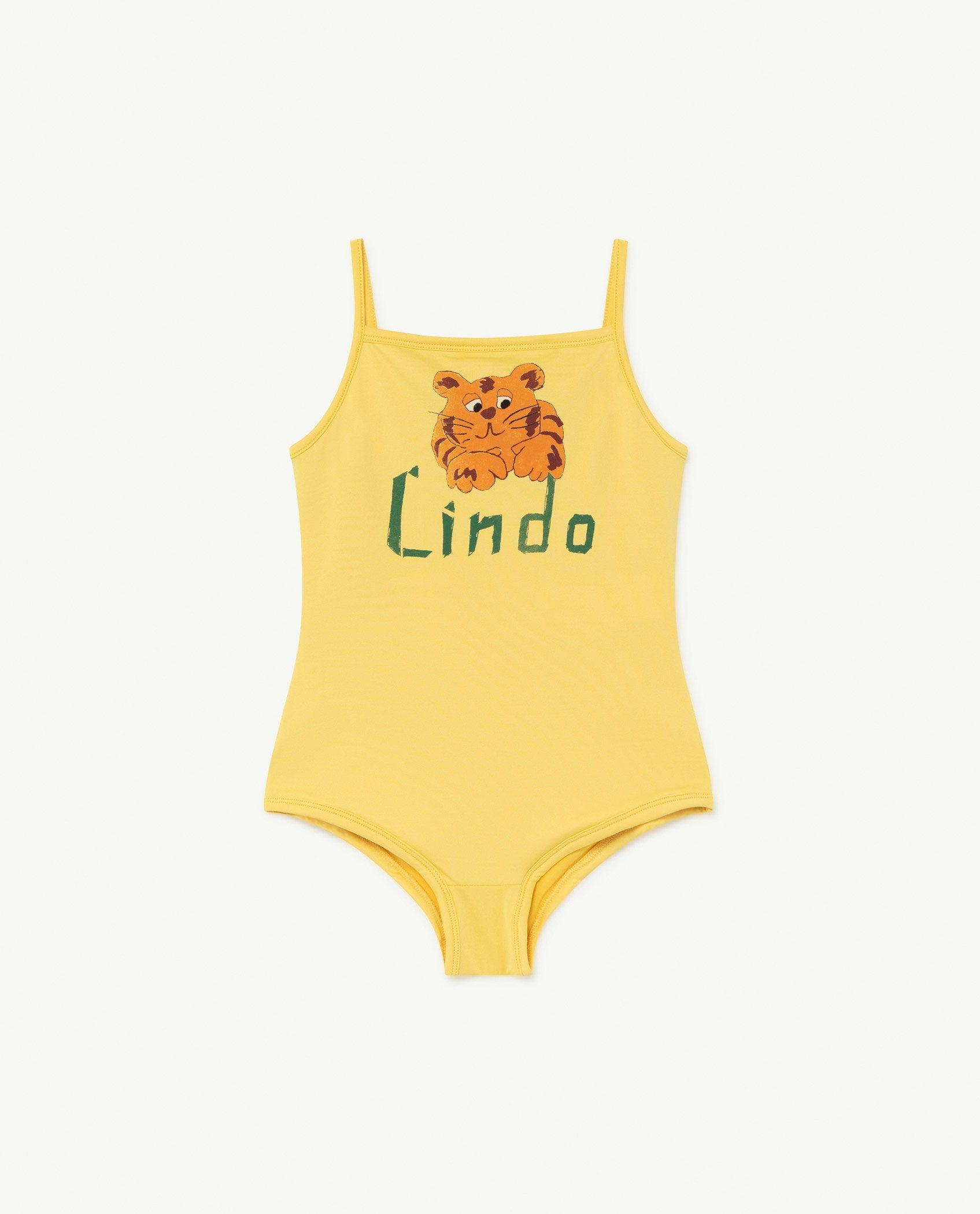 Perfect for a day at the beach, this swimsuit in bold yellow features an adorable motif and is made from Seaqual recycled plastic.