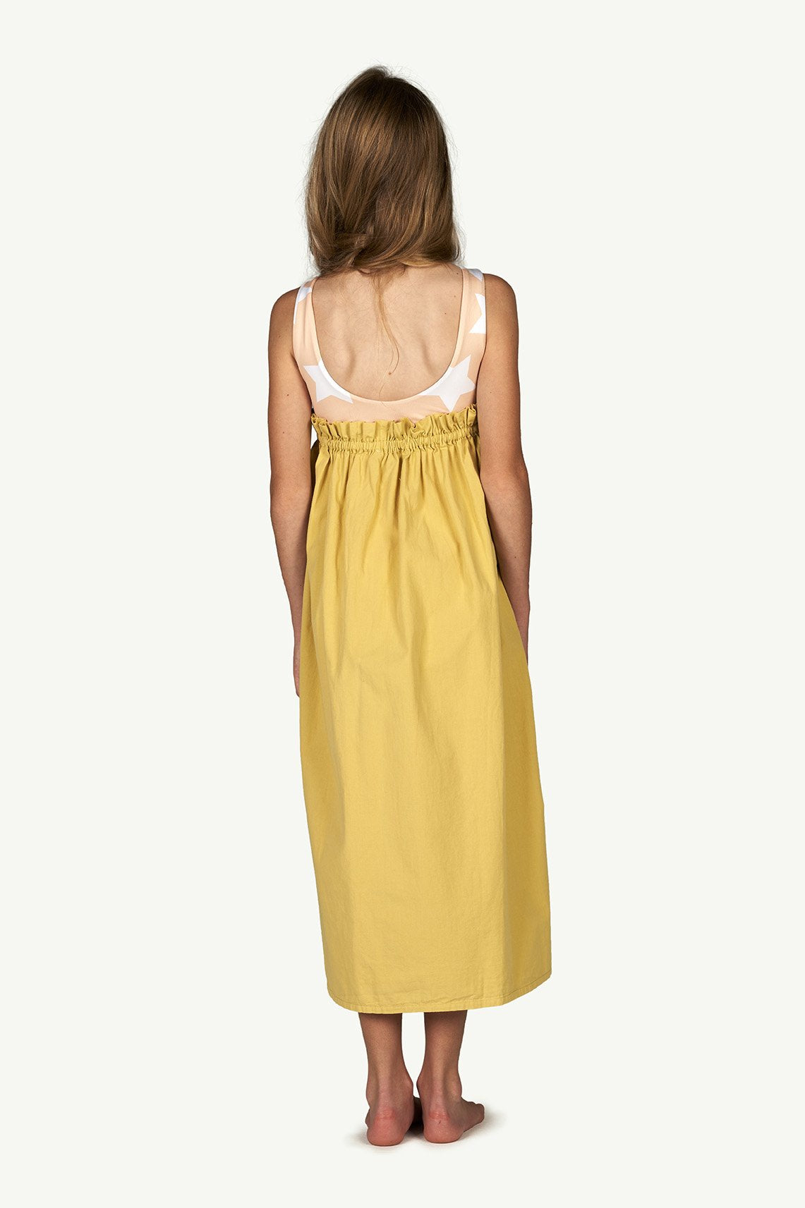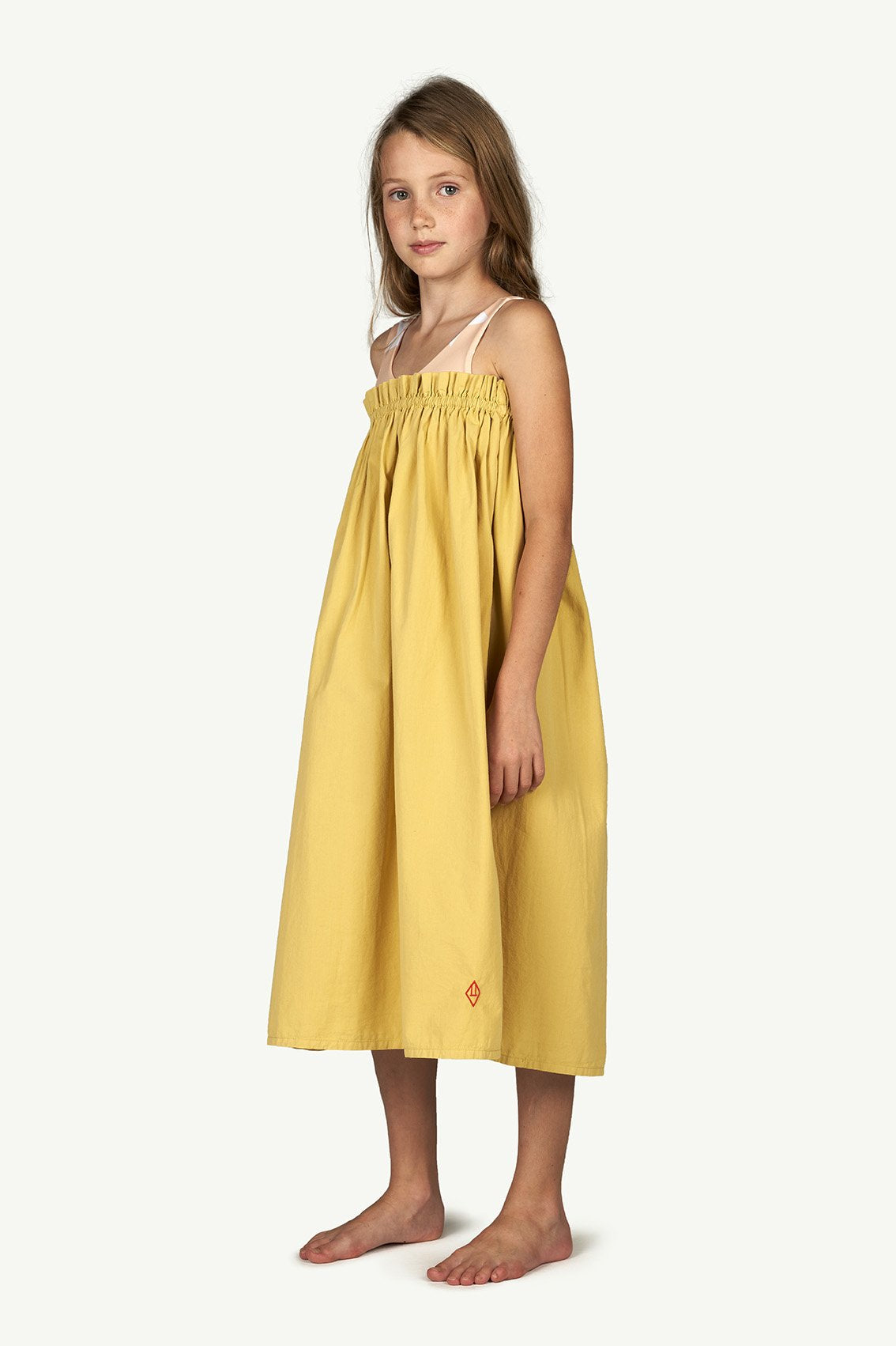 The Yellow Logo Jellyfish Dress is a flattering a-line strapless dress perfect for spring evenings. Featuring our logo on the bottom left. The model's height is 134 cm and is wearing size 8 years.