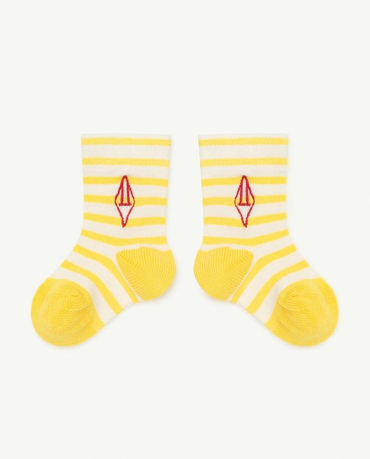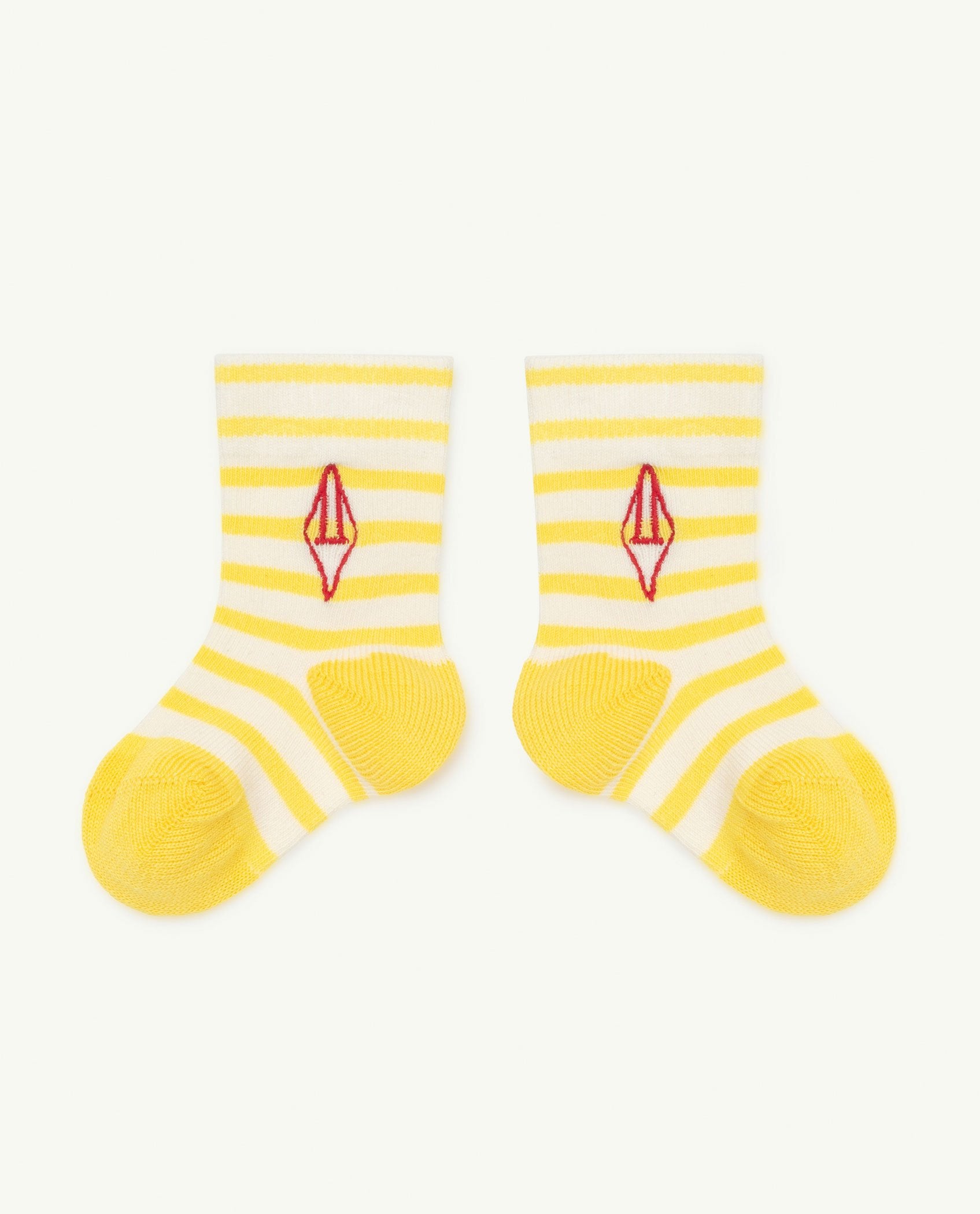 Keep their toes warm in yellow striped socks featuring The Animals Observatory logo.