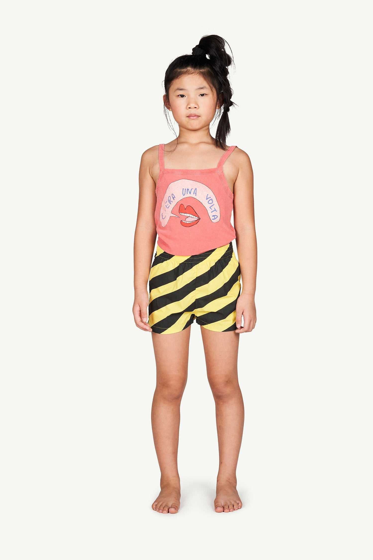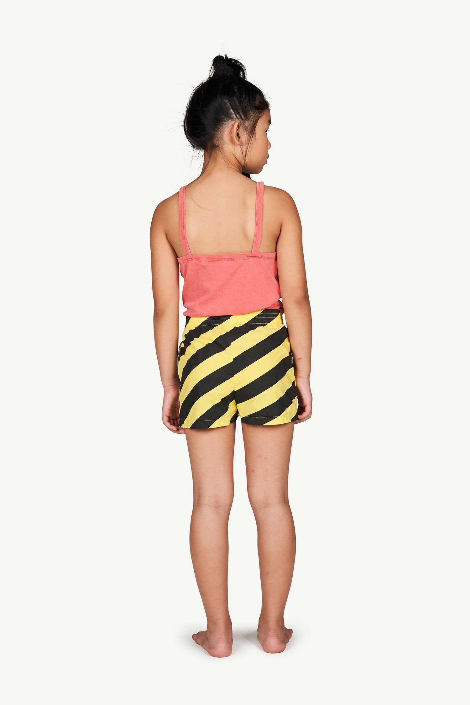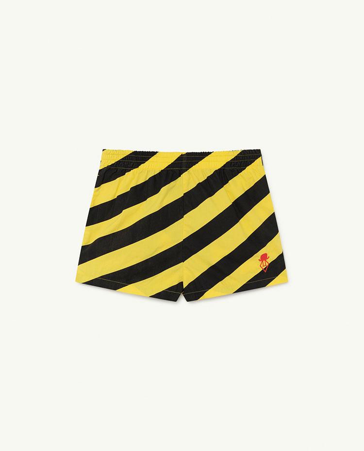 They'll run around all day in these bold yellow striped cotton shorts.